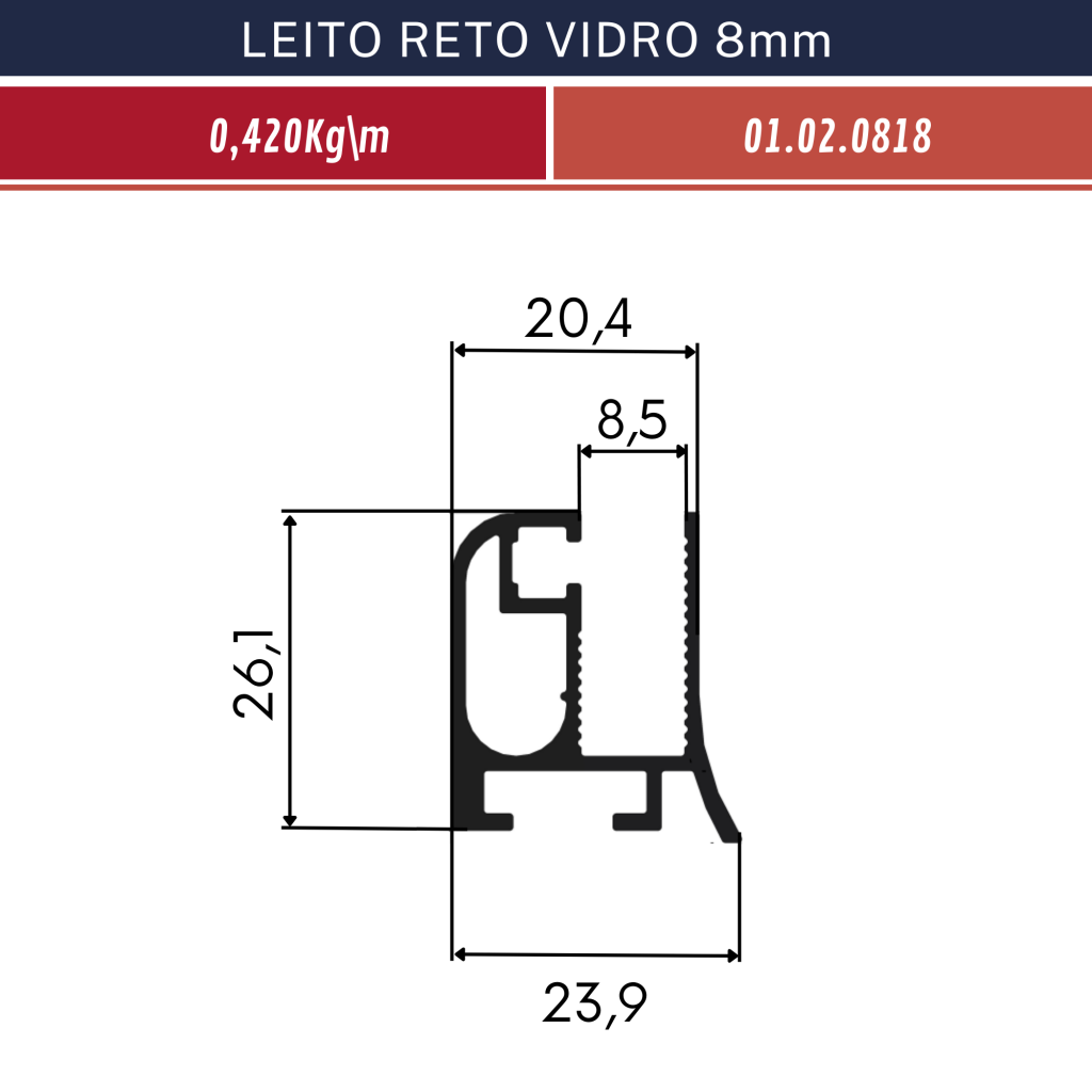LEITO RETO VIDRO 8mm